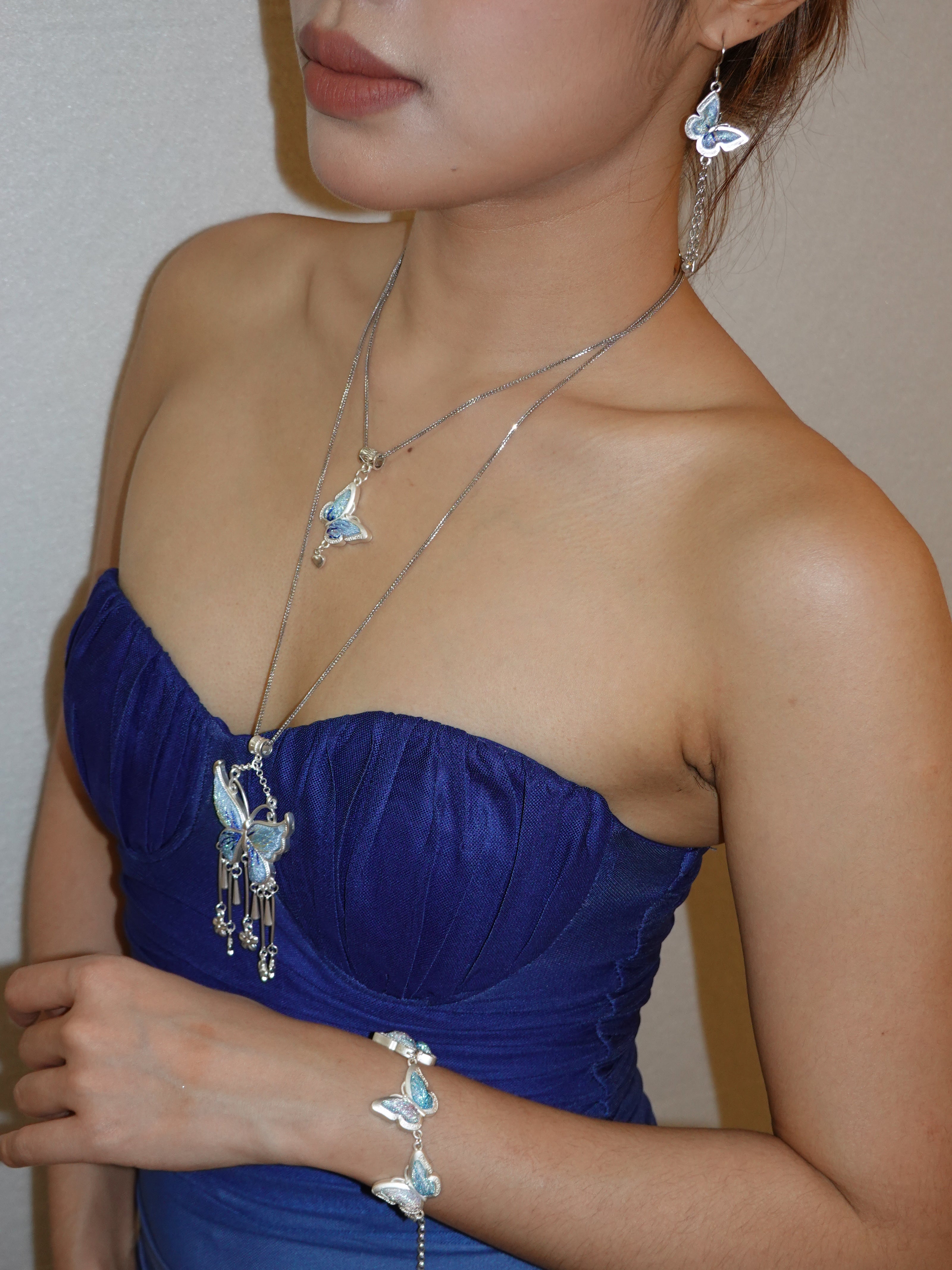 Embroidered Blue Butterfly Silver Earrings